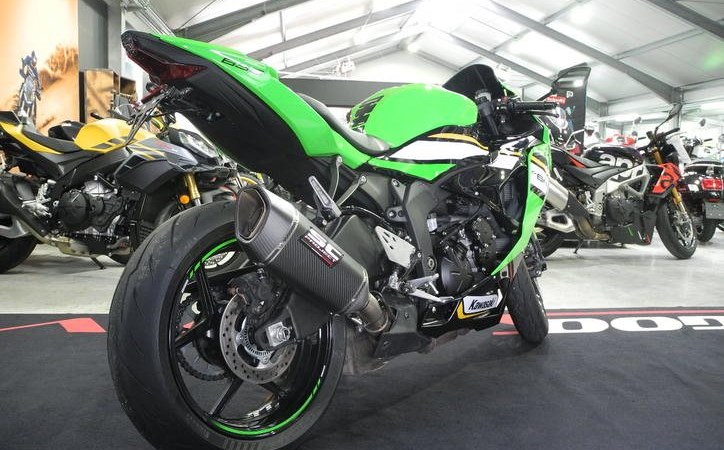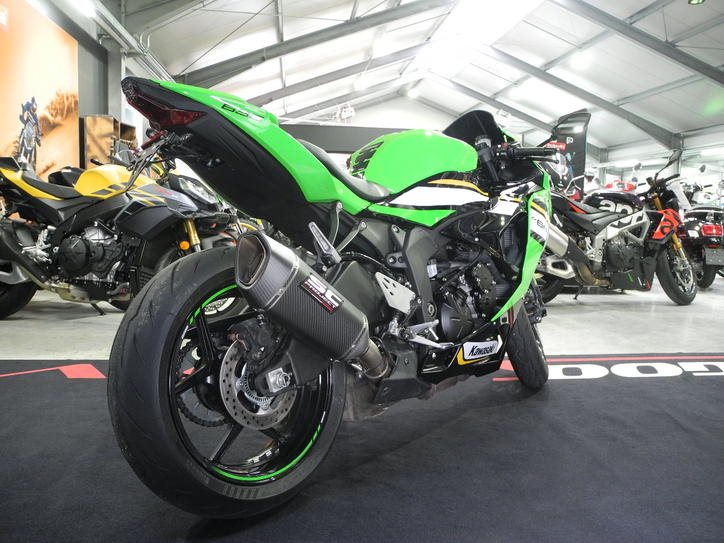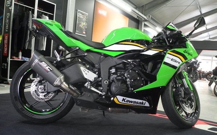Gebrauchtfahrzeug Kawasaki Ninja ZX-6R in grün vom Kawasaki Vertragshändler mit Herstellergarantie bis 11/2028 * TOP-ZUSTAND aus 1. Hand, inkl. Zubehör im Wert von ca. 1.000 (SC-Project Auspuff mit ABE, MRA Windschild getönt, kurzer Kennzeichenträger, Soziusabdeckung), Fahrzeug ist aktuell 4cm tiefergelegt (Rückrüstung auf Originalzustand ohne Aufpreis möglich) alle Rückrufaktionen erledigt, Kundendienst kostenlos neu bei Verkauf