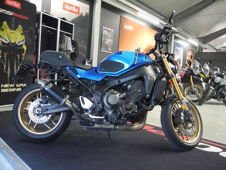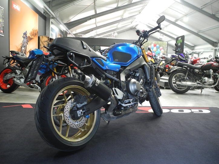 Gebrauchtfahrzeug Yamaha XSR 900 in blau vom Händler mit 1 Jahr Händlergewährleistung * TOP-ZUSTAND mit viel Zubehör montiert: Komplettanlage Akrapovic inkl. ABE, Lampenmaske, kurzer Kennzeichenträger, SW-Motech Kofferhalter, Kundendienst kostenlos neu bei Verkauf