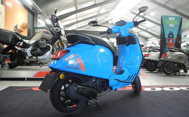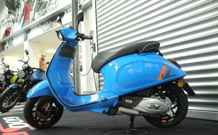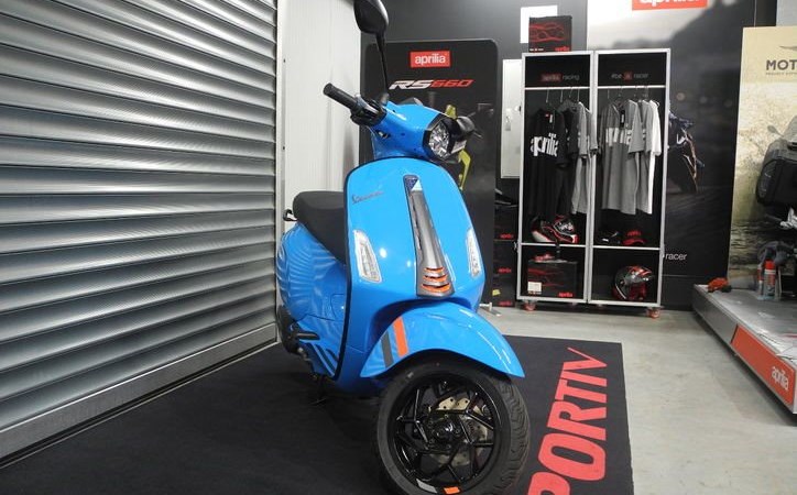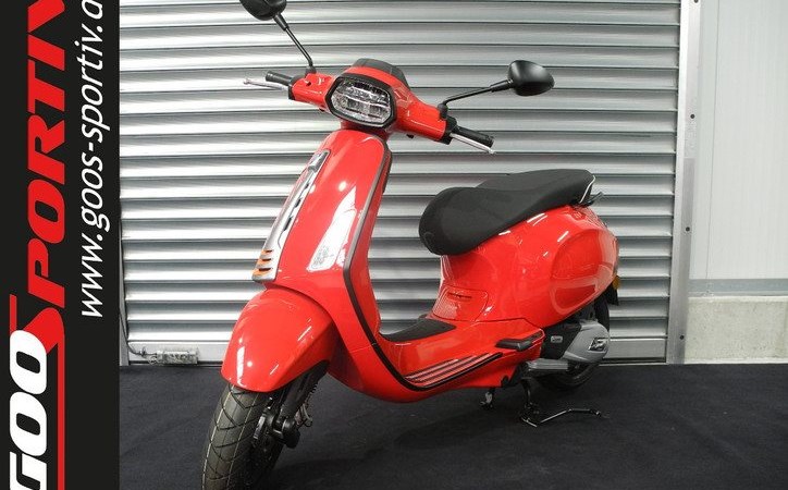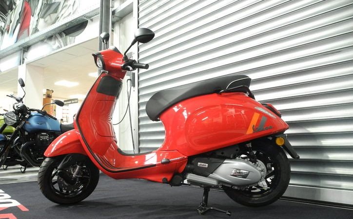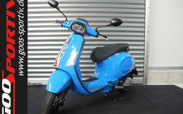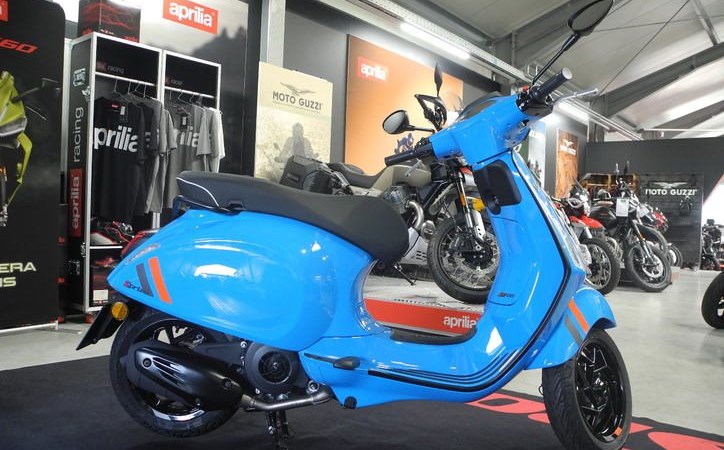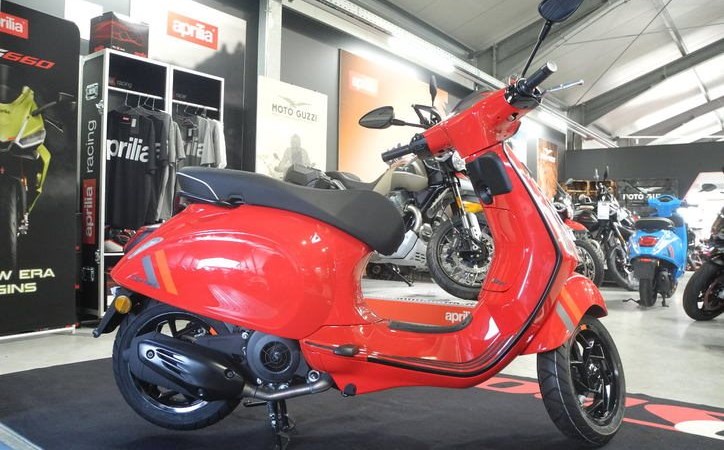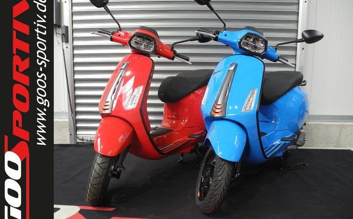 Neufahrzeug Vespa Sprint 125 S E5+ Modell 2025 in rot und blau vom Vespa Vertragshändler mit PRIME Status